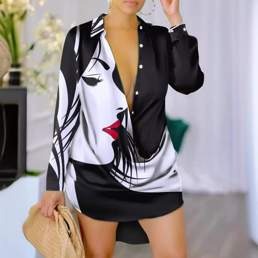 Woman's V-neck Long Sleeve Printed Romper Shirt/ 10 Options